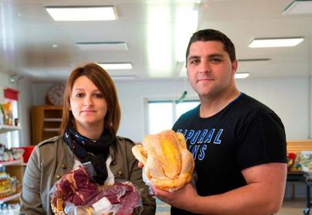 Les artisans derrière les produits : Les Canards Gourmands (à proximité de Lavaur, Tarn), une petite exploitation agricole familiale dirigée par Jérémy et Aurélie, des producteurs qui nourrissent leurs canards élevés en liberté avec une alimentation locale.