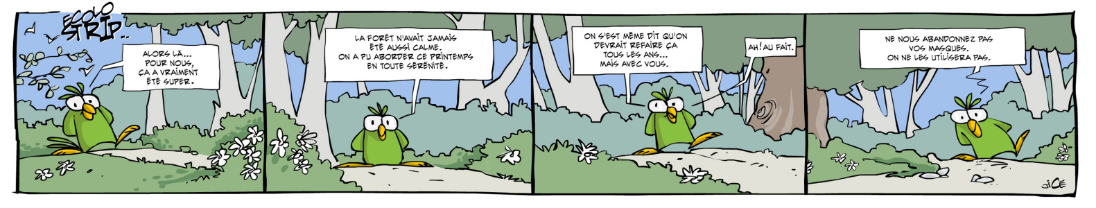 On me dit que les choses s’arrangent. Que l’avenir n’est pas écrit, qu’à la fin de la fin, tout va s’arranger. Je veux le croire, je veux l’espérer. Mais lorsque j’apprends que vous avez réussi, en quelques mois, à en rajouter une couche en matière de pollution juste après que le confinement ait permis à la nature de reprendre un peu son souffle ! Vous interdisez les sacs plastique dans les magasins et, juste derrière, un bataillon de crétins invente un moyen de faire pire avec ces masques. Comment allez vous faire pour vous sauver vous-mêmes ?