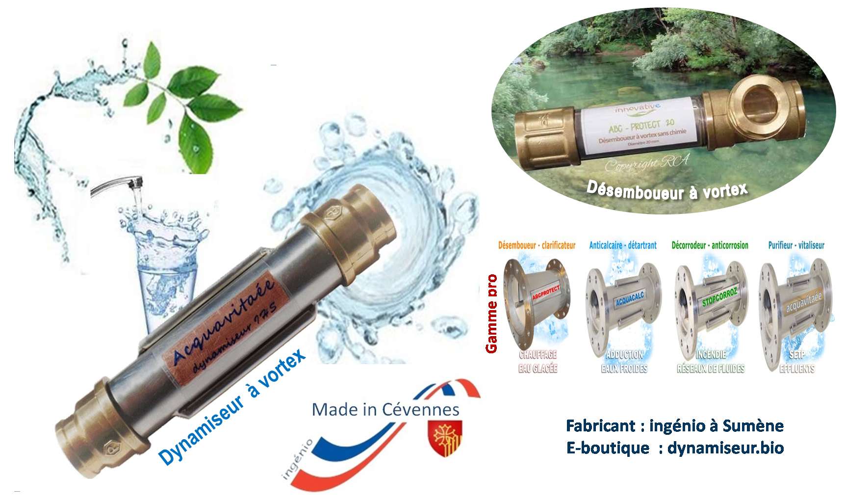 Nous sommes une entreprise familiale implantée en Languedoc au cœur des Cévennes. Nous ne pouvons créer des dynamiseurs dans des conditions de chaînes de montage. Chaque appareil passe par les mains d’hommes et de femmes conscients de la préciosité de l’eau. Nos anticalcaire, dynamiseur et désemboueur sont 100% autonomes et durables. Ils traitent l’eau naturellement sans la malmener. L’heureux « propriétaire » de notre technologie n’est contraint à aucun abonnement, zéro entretien, aucun consommable, pas de pièce à changer, en un mot pas de fil à la patte… et ceci pendant longtemps.