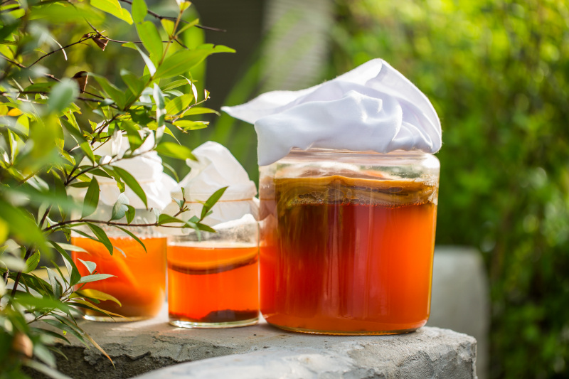 Comme nous l’avons vu précédemment, le kombucha est une boisson fermentée, à base de thé, ô combien bénéfique pour notre ventre.