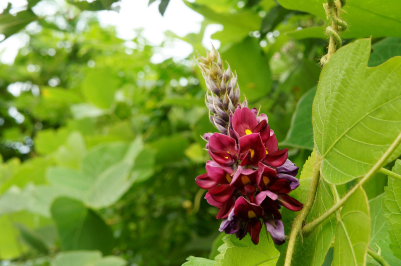 C’est une plante grimpante de la famille des Fabacées – la même famille botanique que le haricot –, surnommée la vigne kudzu car elle est capable de recouvrir en un temps record des arbres ou des maisons entières qui peuvent lui servir de support.