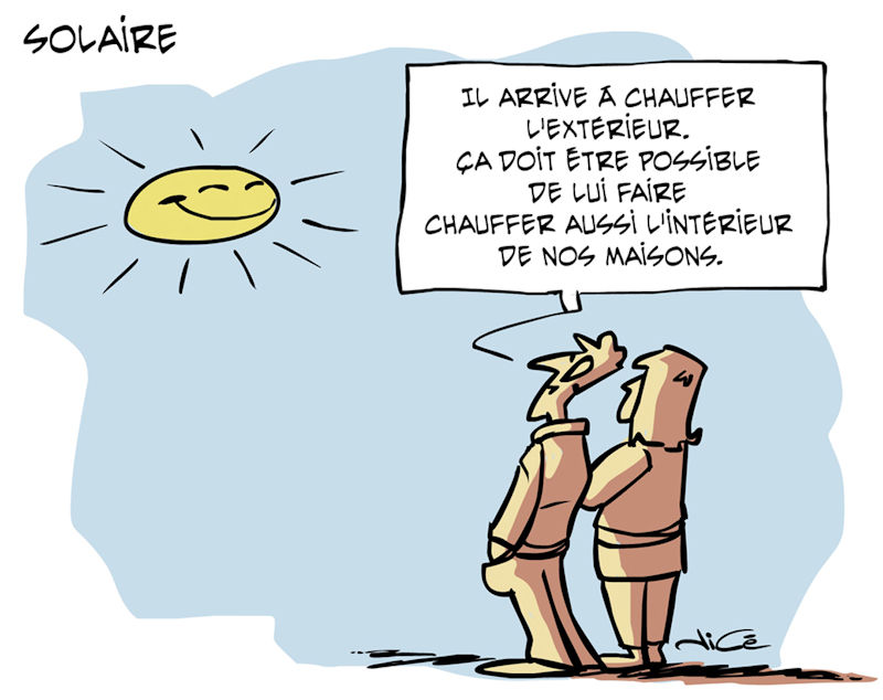En fait, le soleil émet 2 types de rayons : les UV (ultraviolets) et les IR (infrarouges). Ce sont ces derniers qui nous intéressent. Les IR que nous envoie le soleil traversent les différentes couchent de l’atmosphère, viennent « frapper » la matière qui nous entoure et, par un phénomène physique, la réchauffent. C’est le rayonnement. Quand cette matière est une vitre, ils la traversent et réchauffent l’intérieur de la pièce.