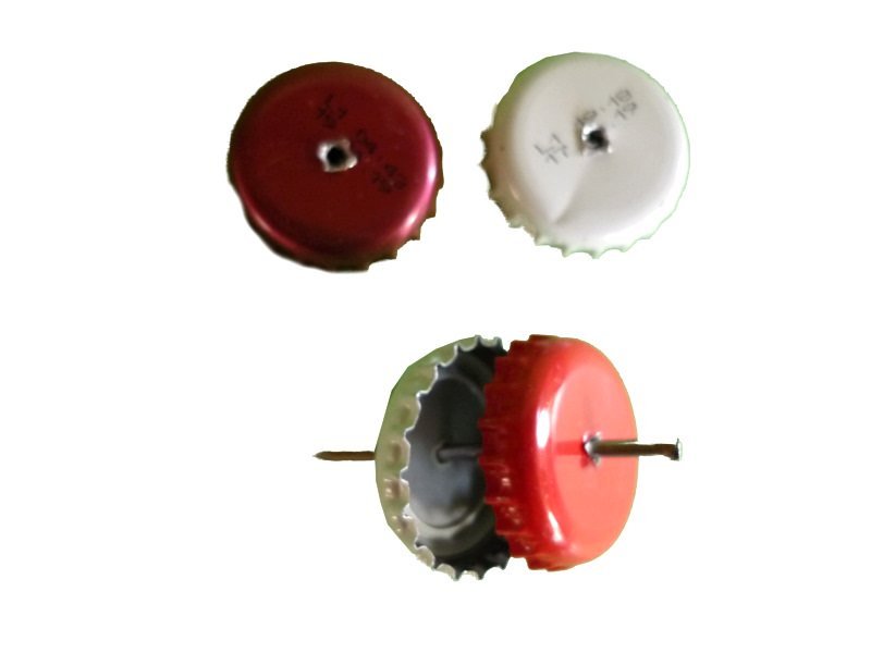 - À l’aide du clou et du marteau, fais un trou au milieu de chaque capsule.