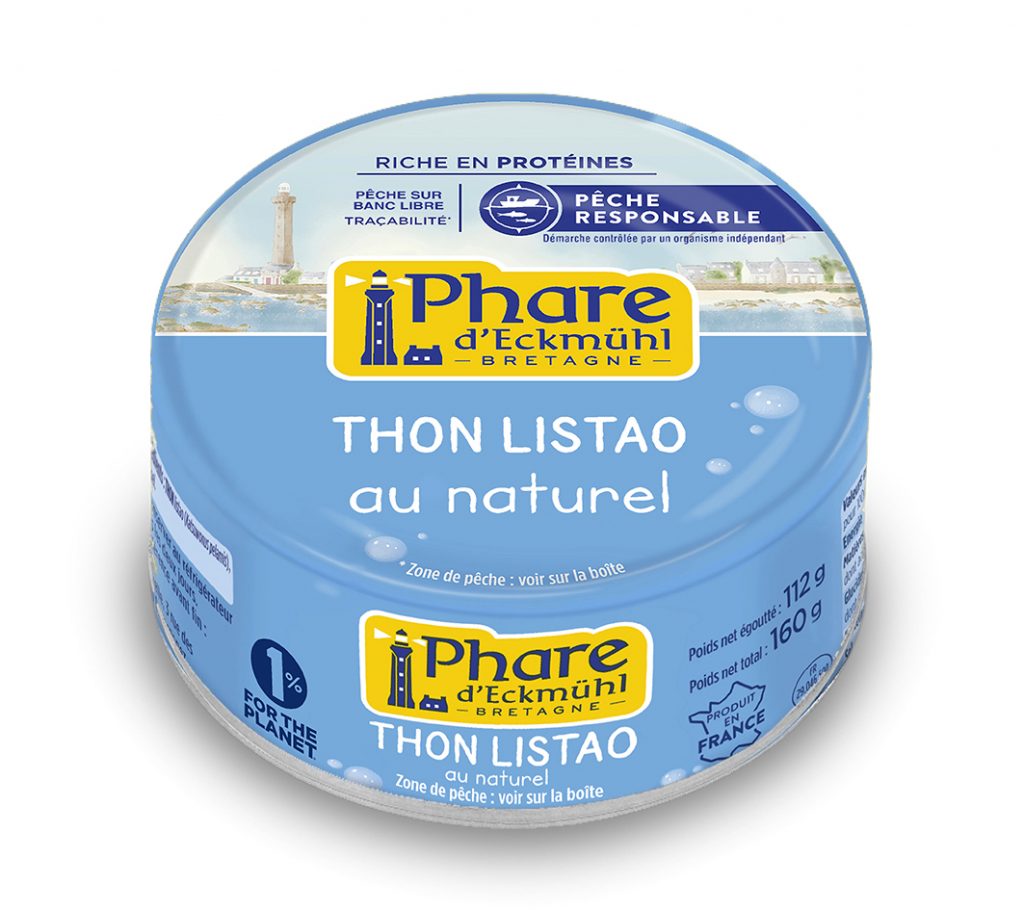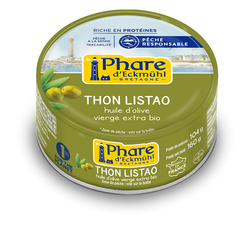 Phare d’Eckmühl, le spécialiste français des poissons en conserve issus de la Pêche Responsable, propose du thon listao en magasins biologiques, mis en boîte en Bretagne à Douarnenez. Cette espèce de thon prolifique est une ressource marine durable que la marque propose à ses consommateurs autant pour ses atouts gustatifs que pour la préservation des ressources. Au naturel, à l’huile d’olive vierge extra BIO ou à la sauce tomate BIO, le thon listao Phare d’Eckmühl se distingue par sa chair délicate et sa saveur prononcée. Source de protéines, il se déguste en salades et se marie parfaitement avec des plats en sauce ou épicés type mafé. À travers la vente de ses gammes de thon listao, Phare d’Eckmühl contribue au programme “1% for the Planet” et va même au-delà de ses engagements en termes de pêche responsable. La marque a également mis en place un outil de traçabilité sur www.pharedeckmuhl.com qui informe les consommateurs sur la méthode de pêche utilisée, la zone de pêche et le nom du bateau de chacun des lots. Les thons listao Phare d’Eckmühl sont distribués en réseaux de magasins biologiques.