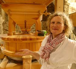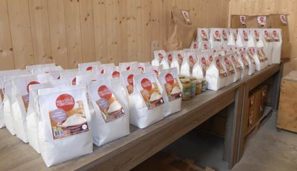 Notre exploitation dispose d’un moulin avec des meules de pierres pour produire des farines biologiques fermières. La meunière Anne transforme uniquement les céréales produites sur notre exploitation. Le moulin de Chantemerle produit ainsi des farines de Grand Epeautre, Sarrasin, Seigle & Blés. La mouture sur meules de pierres permet une production de farines semi- complètes (type 80), farines complètes (type 110) ou farines intégrales (type 150). La famille Gobard vous garantit un PRODUIT FERMIER DE QUALITE issu de l’Agriculture Biologique élaboré uniquement avec les céréales produites sur la ferme familiale de Chantemerle.