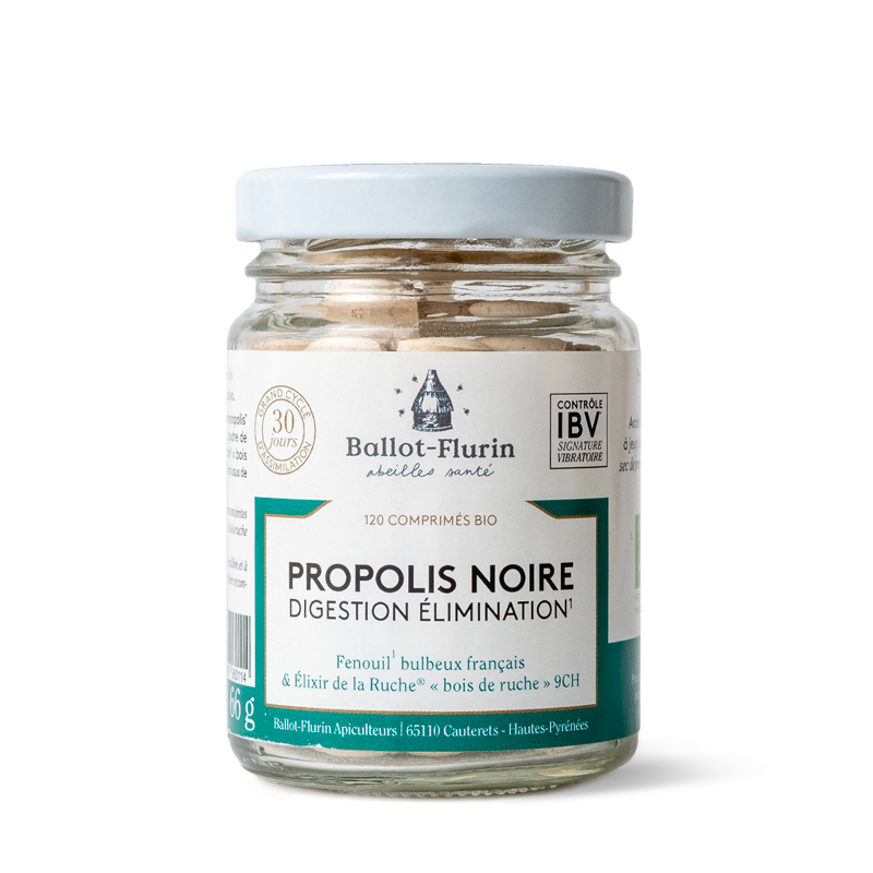 Celles et ceux qui ont une flore intestinale délicate, alors que c’est le nid de notre immunité, opteront aussi pour les comprimés Digestion et élimination à la propolis noire et au fenouil.