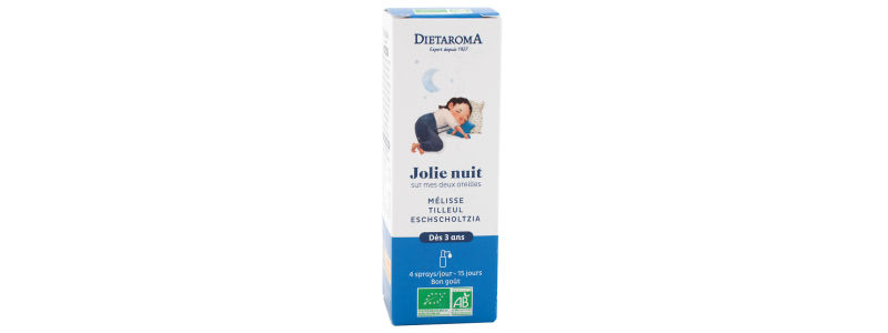 Jolie nuit, c’est comme un rituel du soir pour le sommeil des enfants dès 3 ans. Bio, faible en sucre, il est pratique grâce au petit spray et 100 % français. Dès 3 ans.