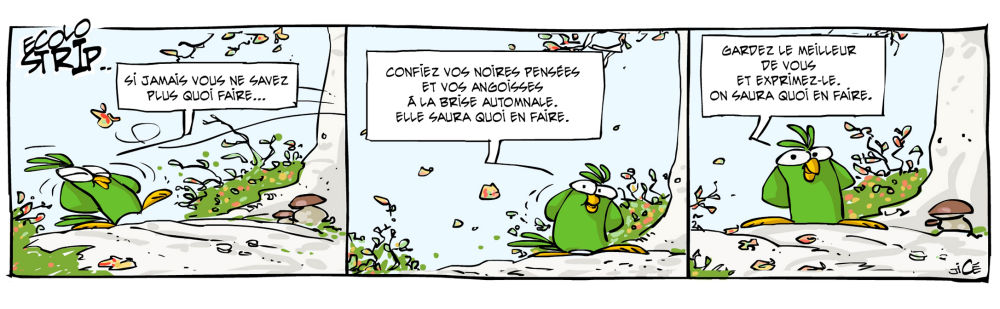 C’est la rentrée ! Vous m’avez l’air un peu inquiets. Cette histoire de masques, de vaccins et tout le toutim est bien compliquée. Sommes-nous condamnés à nous isoler de plus en plus en tête-à-tête avec nos téléphones dans des maisons fermées ? Ça va pas être simple. De l’isolement à la peur de l’autre, il n’y a qu’un pas, un tout petit pas. Le monde est en train de changer. Que dis-je, le monde a changé ! C’est une bonne occasion pour chacun d’entre nous ! De toute manière, il va bien falloir nous le manger, cet avenir qu’on nous décrit comme incertain. Est-ce que tu veux, simple spectateur, revoir le film d’avant en couleur, ou bien tu veux dépoussiérer deux ou trois trucs dans le genre « bienveillance », « respect de la nature » et, pourquoi pas, « écologie » ? Franchement, tu n’aimerais pas te balader dans des forêts propres, retrouver le goût des cerises et boire à la fontaine ? Ignorons les gougnafiers qui nous vendent des fringues à deux balles fabriquées par des minots du bout du monde, ou du guano en barquette en prétendant que c’est du « bon et pas cher ». Libérons-nous de cette peur collective qui me noue la gorge et allons chercher des sourires dans les yeux du voisin. Je sais que je vais encore me faire traiter de bisounours et qu’une fois de plus, les esprits « éclairés » vont me moquer et dire que c’est de l’écologie pour vieil enfant naïf. On va m’opposer le fameux « principe de réalité », et « la vraie vie, ce n’est pas ça », et « patin-couffin ».