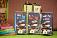 Des chocolats de 70% à 100 % de cacao, une tablette au sirop d’agave des ganaches préparées sans beurre et sans crème pour des chocolats fins et légers aux goûts affirmés (figue, pistache, gingembre, fruits secs). La tradition et le bio pour le plaisir et l’équilibre, chocolat sans lécithine de soja. Du chocolat artisanal.