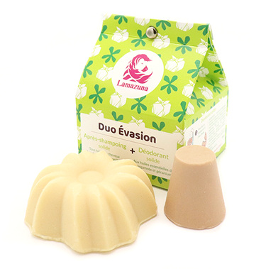 Dans ce coffret : Ce coffret original est un bon moyen de découvrir la cosmétique solide, avec ce duo 100% d’origine naturelle et certifié bio COSMOS Organic. L’après-shampoing solide aux notes vanillées est accompagné d’un nouveau déodorant lui aussi solide au parfum original et unisexe : bergamote-géranium, en exclusivité dans ce pack. Disponible sur le site Internet. Prix : 18€ |