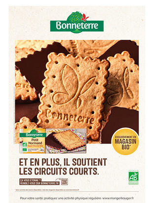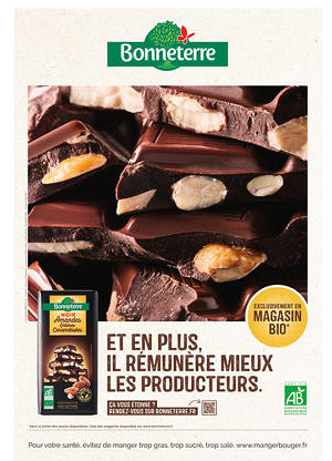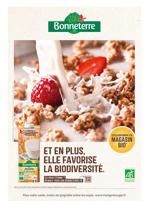 Un fromage coulant, des brisures de chocolat… La nouvelle campagne de communication de Bonneterre mise sur les gros plans qui font saliver tout en affichant ses engagements auprès des consommateurs. Un biscuit qui défend les circuits courts, une boisson végétale qui favorise la biodiversité, un chocolat qui rémunère mieux les producteurs, un munster qui préserve la vache vosgienne : quatre produits sont ainsi mis à l’honneur dans des créations faisant cohabiter des images inspirées de la tendance foodporn et des mots vantant leurs insoupçonnées vertus.