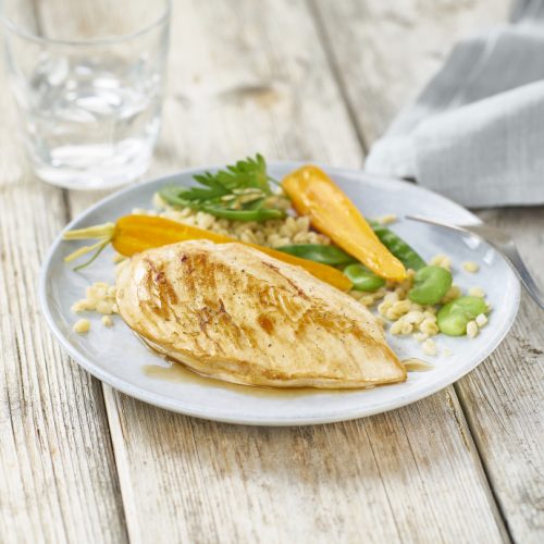 - Dans cette même poêle, faites cuire les filets de poulet 5 à 8 mn sur chaque face selon l’épaisseur du morceau.