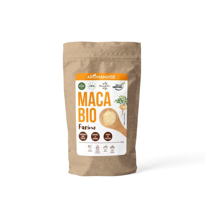 Le superaliment des Incas ! Aussi appelée ginseng péruvien, la maca est une racine aux nombreuses qualités nutritionnelles ! Riche en calcium, magnésium, fer et source de zinc et de protéines, elle stimule l'activité intellectuelle et renforce la mémoire en plus de soutenir la performance physique et mentale. C'est également un énergisant, sans pour autant contenir de caféine.