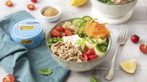 Pokebowl de thon listao au naturel phare d’Eckmühl et légumes d’été