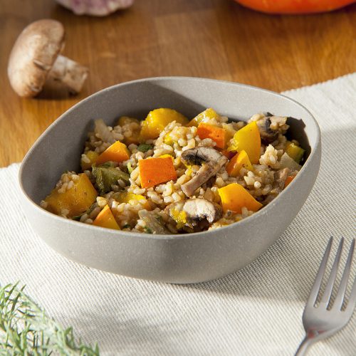 - Avant de servir, incorporez les cubes de potiron et la crème végétale, en mélangeant délicatement. Dégustez bien chaud.