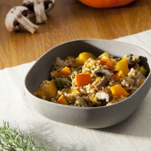 - Avant de servir, incorporez les cubes de potiron et la crème végétale, en mélangeant délicatement.