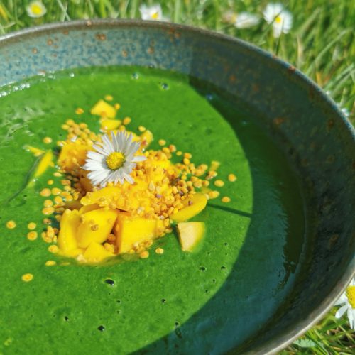 Ce smoothie très nourrissant constitue un repas à part entière. Il permet d’ajouter du vert dans son assiette et de bénéficier de toutes les vertus de la chlorophylle. Les aliments verts ont un effet antioxydant, régénérant et oxygénant, et apportent potassium et magnésium pour un cœur sain, au sens propre comme au sens figuré.