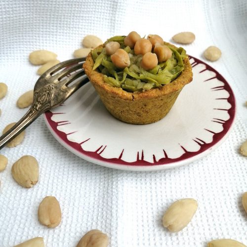 Remplissez les fonds de tartelettes et disposez sur le dessus quelques pois chiches.
