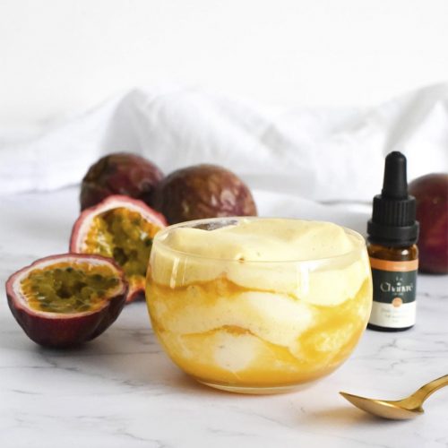 • Ajouter l’huile de CBD au coulis mangue passion.