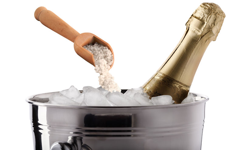 En cette période de fêtes, voici une astuce pour rafraîchir plus rapidement vos bouteilles de champagne ou de vin : ajoutez une poignée de gros sel dans la glace du seau à champagne et faites-y tremper la bouteille.