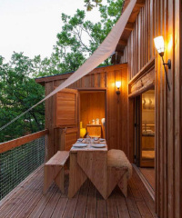 Connaissez-vous le mot japonais Komorebi ? Il décrit le jeu du soleil entre le feuillage, cette lumière tamisée qui évoque le bonheur et les vacances sous les chênes… À Pella Roca, découvrez des cabanes perchées avec spa qui profitent d’un généreux bain de Komorebi !